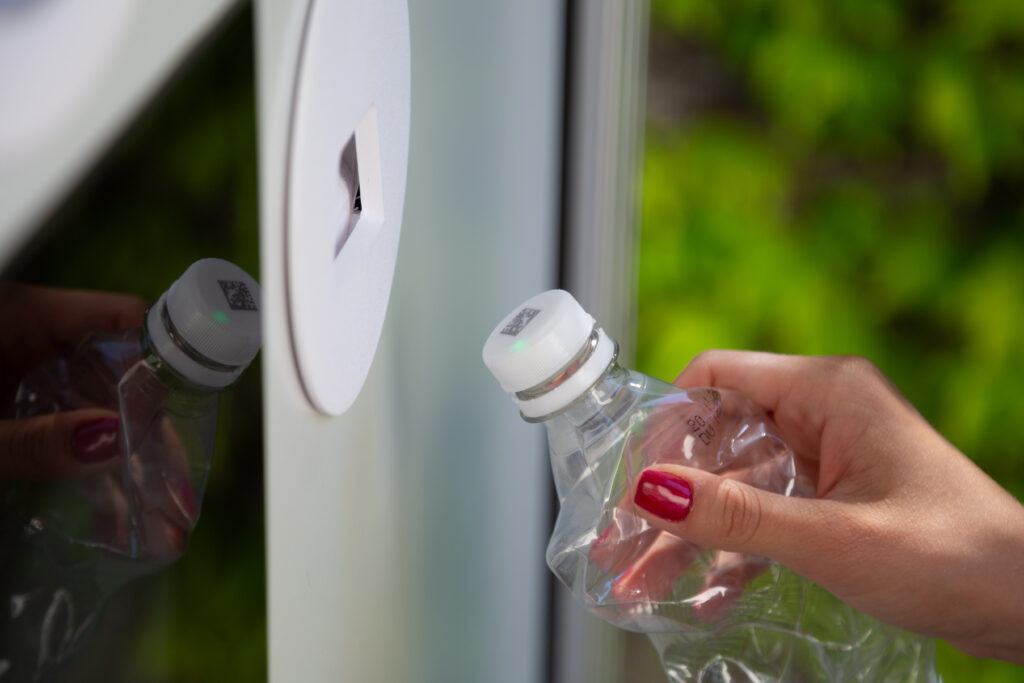 Smart Collection Point is equipped with an AI powered camera. It monitors the container handover and evaluates what type of object is being returned.